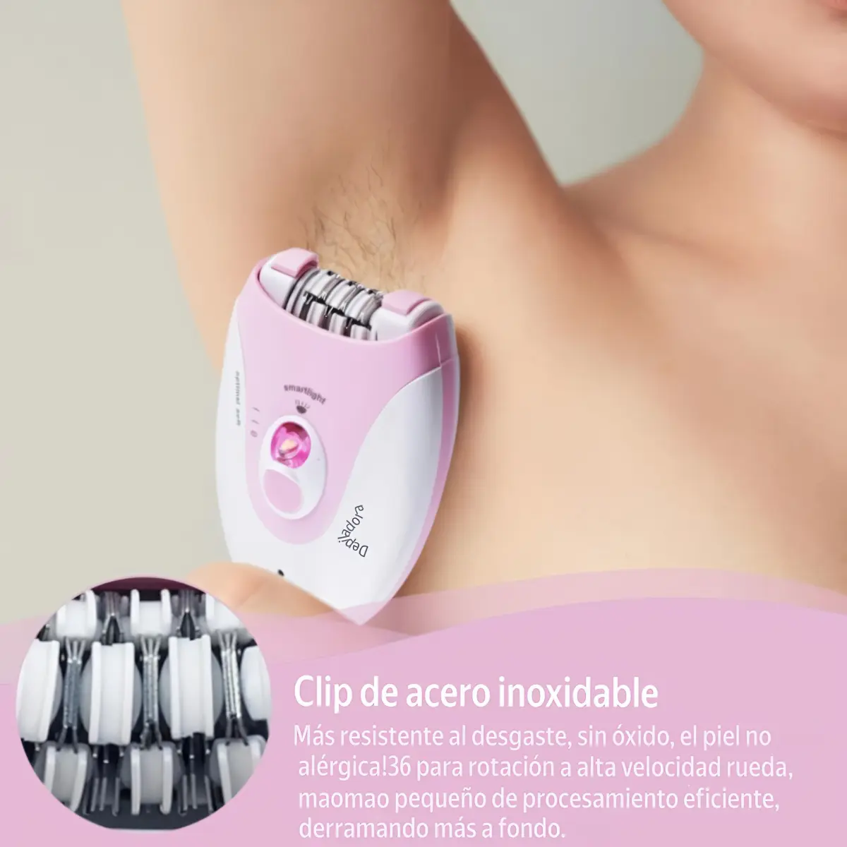 Depiladora eficaz e indolora para mujer: nuestra depiladora está equipada con 36 pinzas que pueden agarrar y eliminar con precisión el pelo fino o grueso, y también está equipado con almohadillas de masaje en el lateral, por lo que no tienes que preocuparte por una eliminación accidental cuando tocas tu piel lesionada, nuestra depiladora para mujer reduce las molestias y al mismo tiempo garantiza una depilación rápida.
