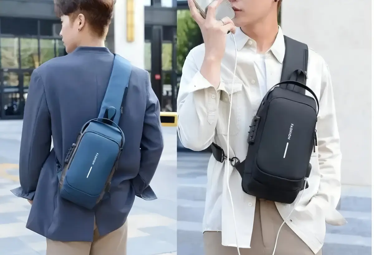 Inspiración de diseño: esta Bandolera Cruzada adopta el concepto de elementos de diseño de automóvil deportivo para crear una experiencia visual personalizada. Diseño Minimalista de apariencia de línea Antirrobo para Viajes más eficientes.