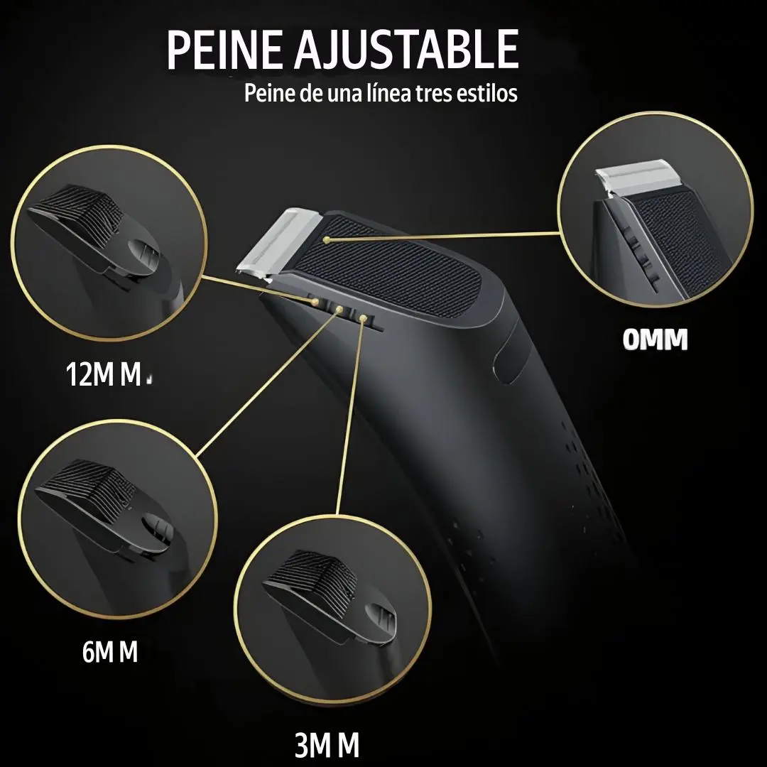 Peine regulable con diferentes niveles de longitud para adaptar el corte a tu estilo personal.