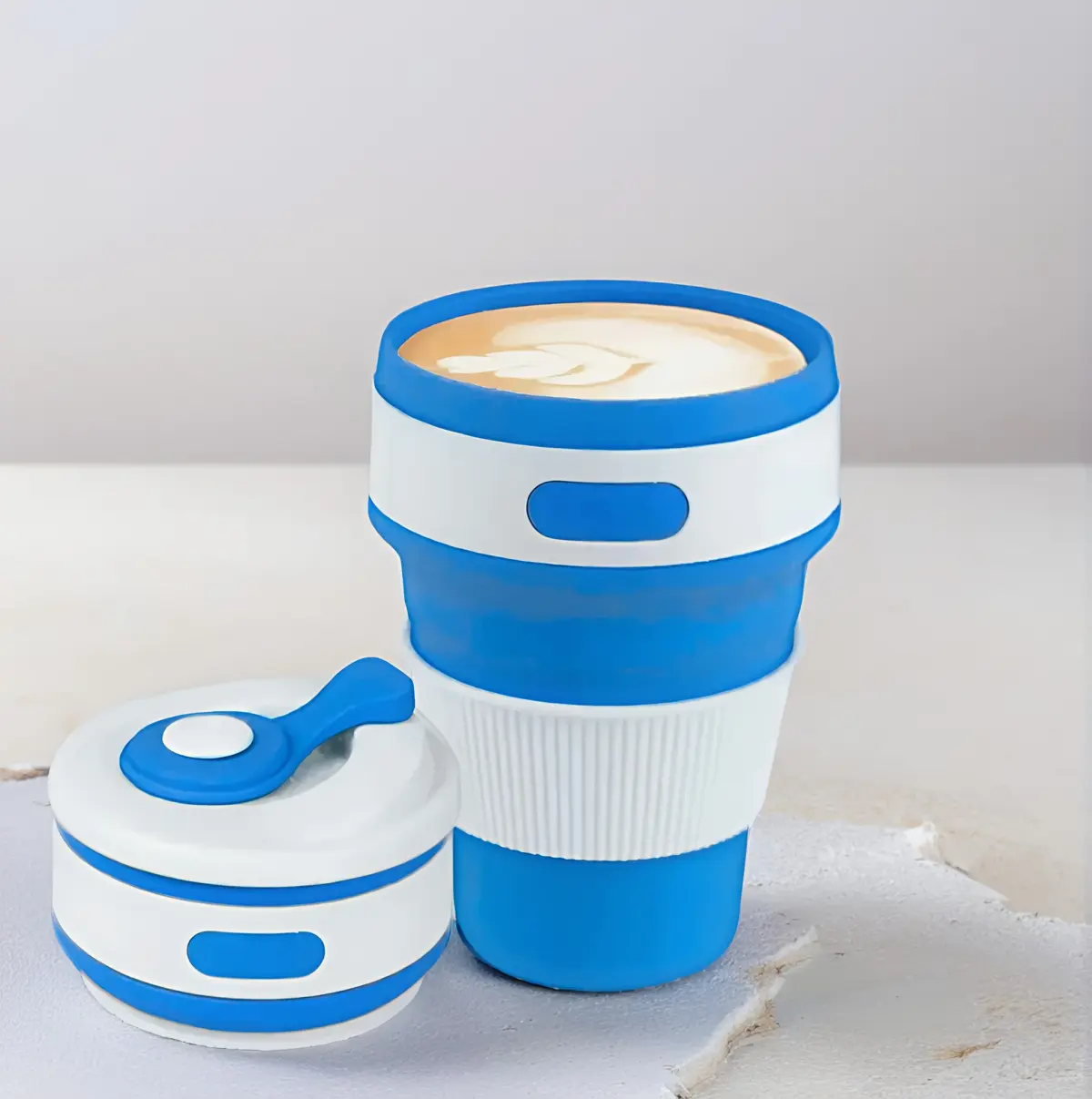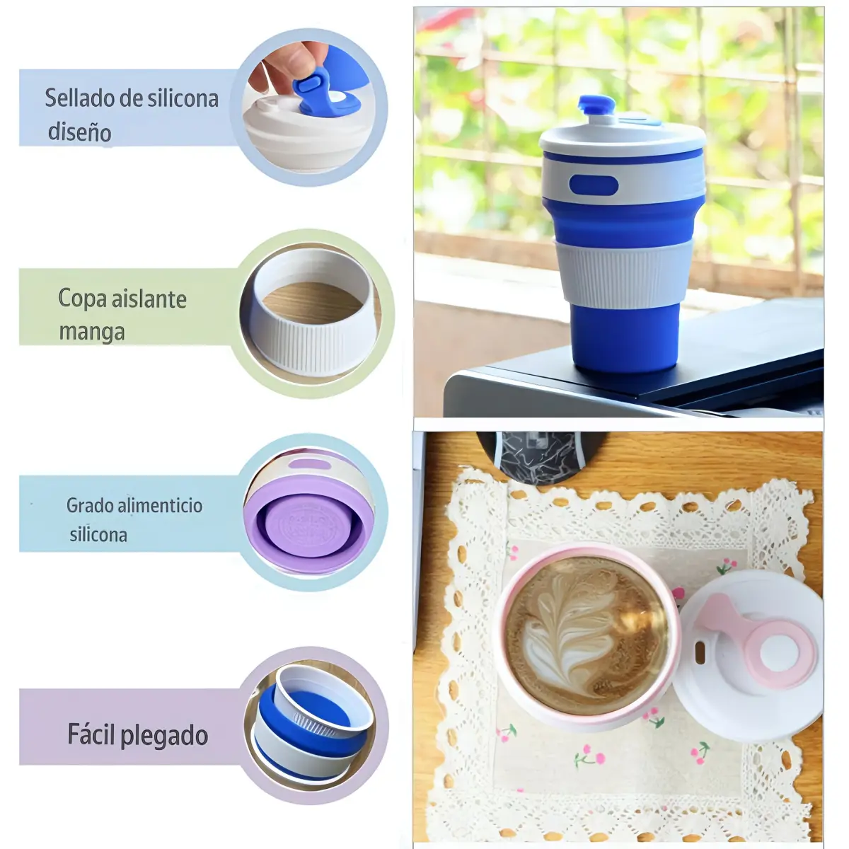 Novedoso Vaso termico Plegable con Agarre de Silicona. Son ideales para ahorrar espacio en viajes o uso diario.